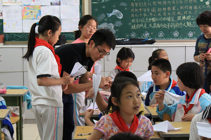 5月4日星期一上午,完整足球比分 SY14054班和ZY1405237班的同学来到北航附小,开展了“放飞纸飞机,放飞梦想”的主题活动,本次主题活动是完整足球比分 和北航附小共建的一个环节。