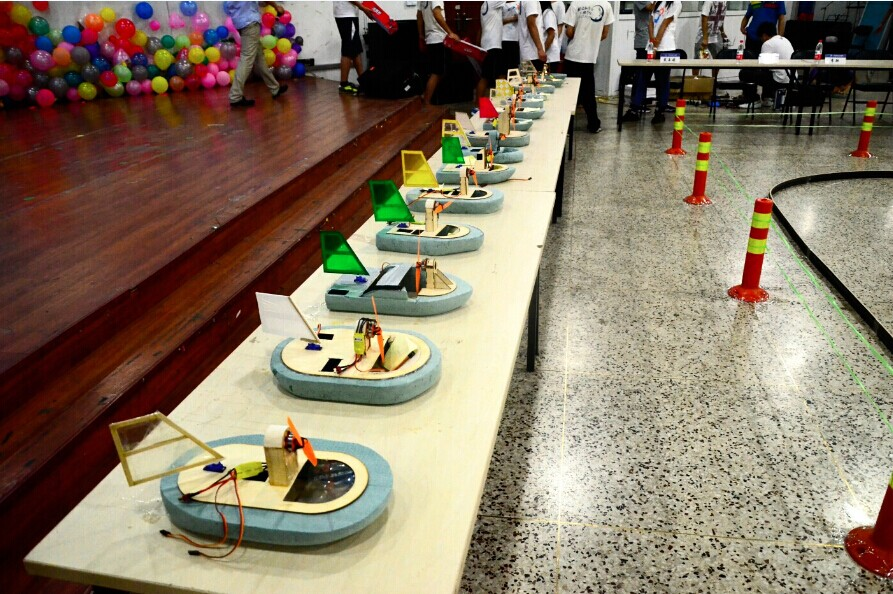 2014年6月15日,首届“气浮式贴地航行器竞速比赛”决赛在沙河校区多功能厅隆重举行。