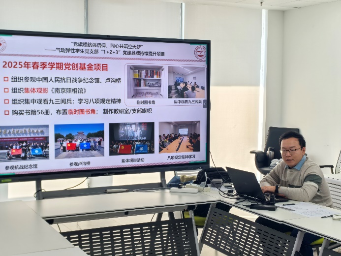 支部书记晁鹏辉代表支委会向支部党员与老师汇报上一学年工作情况。过去一年内,气动弹性学生党支部严格落实“三会一课”制度,组织有条理,工作有成效,打造了校企共建、党史馆参观、抗战纪念馆参观、红色观影等一批颇有意义的党建活动;全学年开展党员大会4次,主题党课及学习日活动9次,集中学习2次;连续获批2024年秋季学期及2025年春季学期校院两级党创基金项目;支部荣获2024年完整足球比分